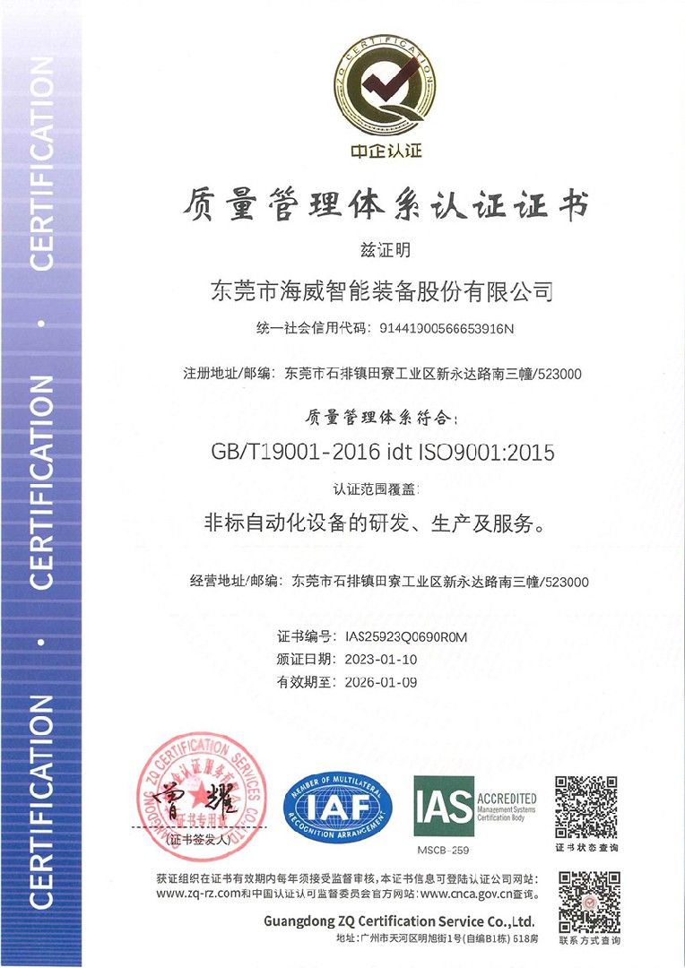 東莞市夜色资源网智能裝備股份有限公司是一家專注於金屬卷料衝壓、剪切、激光落料等自動化設備製造領域的公司,集研發、生產、銷售和服務於一體,。已全麵通過ISO9001、ISO4001、ISO5001三大體係認證,並實施了ERP、CRM、MES等企業信息化項目。